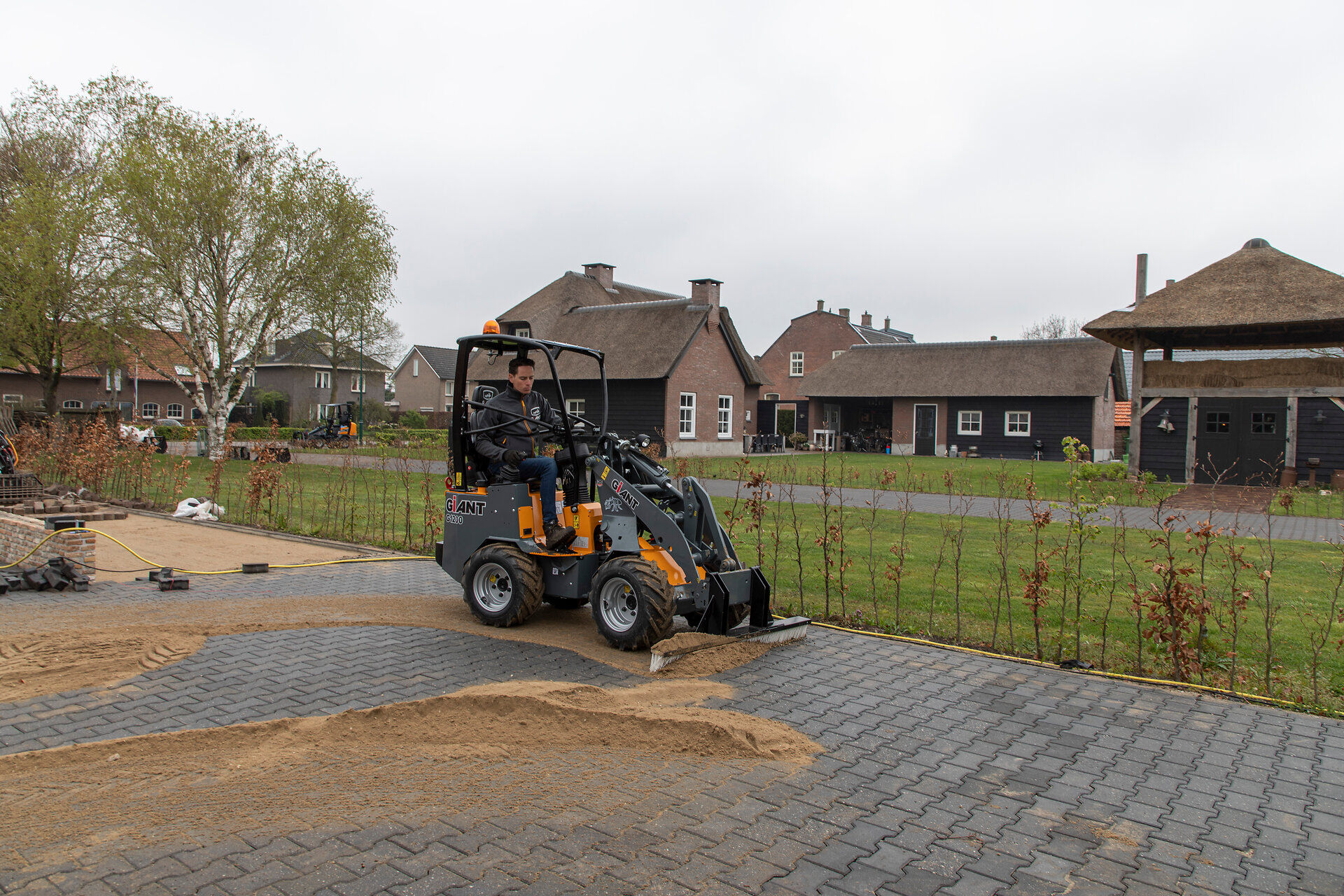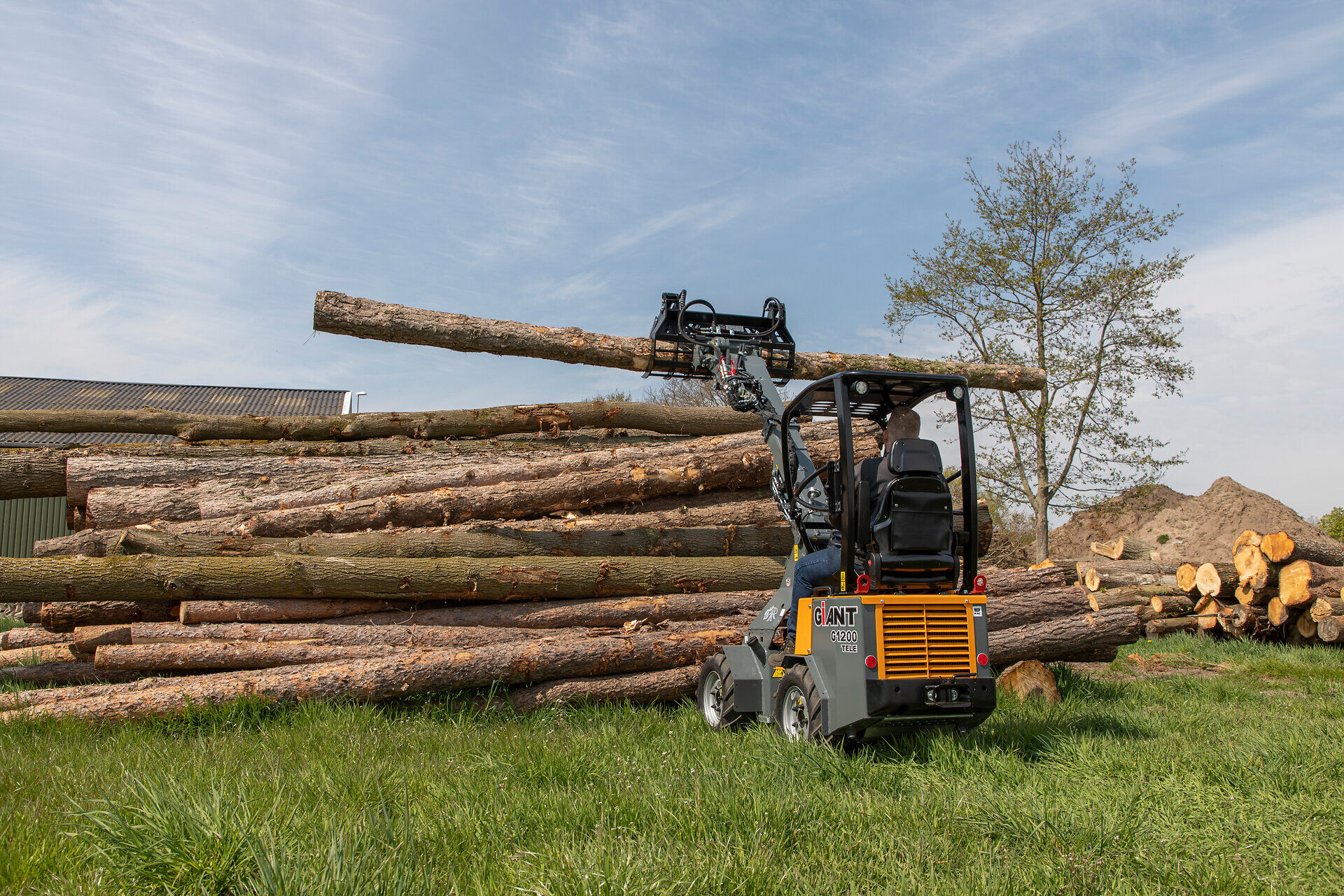 Der Kompaktlader G1200 ist serienmäßig mit einem leistungsstarken 25-PS-Motor und einem luxuriösen Sitz mit Sicherheitsgürtel, Armlehne und verlängerter Rückenlehne ausgestattet. Dies ermöglicht ein optimales Arbeiten mit hohem Komfort. Die kompakte Größe sorgt für einen kleinen Wendekreis und Manövrierfähigkeit in engen Gängen. Was die Maschine noch einzigartiger macht, ist die Leistung im Verhältnis zum Dienstgewicht. Die Hubkraft beträgt 1.100 kg und die Maschine hat ein Dienstgewicht von 1.100 kg.