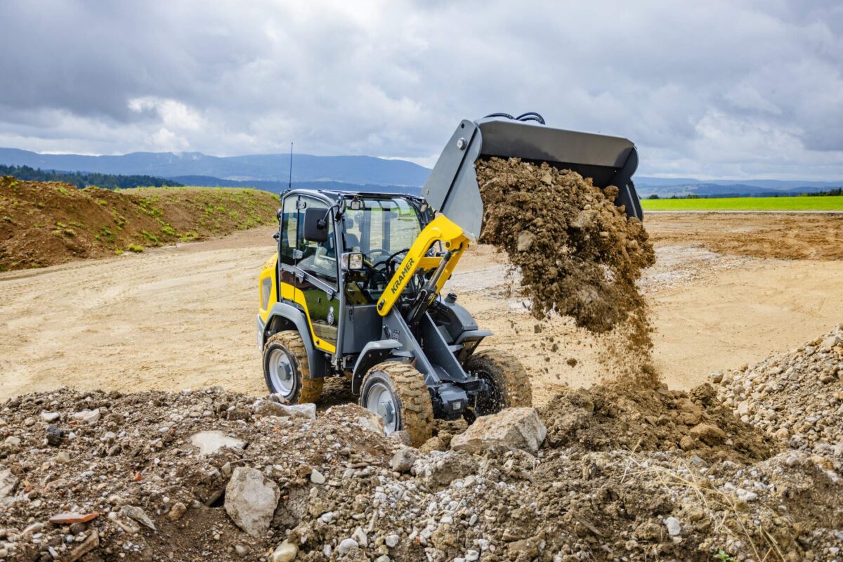 Der Radlader 5045 überzeugt mit der Kombination aus geringem Eigengewicht und hoher Nutzlast. Mit einem Betriebsgewicht von ca. 2.600 kg kann der 5045 auf einem 3,5 t Anhänger (mautfrei) transportiert werden. Das spart nicht nur Zeit, sondern steigert auch die Maschinenauslastung. Das Verfahren von handelsüblichen Pflastersteinpaletten oder Steinpaketen sowie das Be- und Entladen von LKWs ist für den 5045 mühelos machbar. Die hohe Leistung bei kompakten Abmessungen erweitert das Einsatzspektrum für Einsätze in beengten Bereichen wie z. B. Tiefgaragen, Parkhäusern. Je nach Bedarf stehen zwei Motorvarianten zur Auswahl, standardmäßig ein 19 kW Motor und optional ein 33 kW Motor, mit dem bis zu 30 km/h gefahren werden kann. Mit dem 5045 revolutioniert Kramer die 2,8 t Klasse.