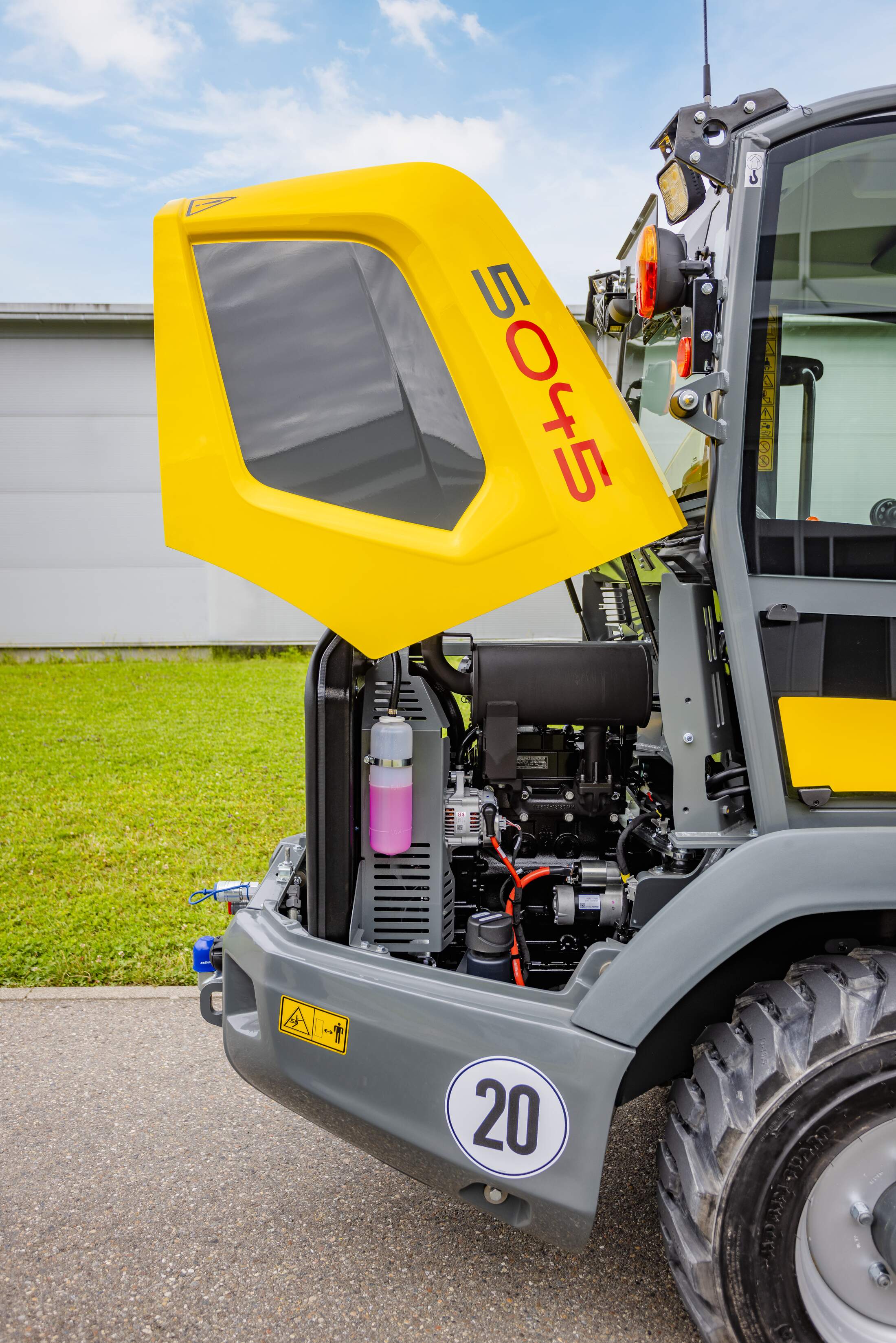 Der Radlader 5045 überzeugt mit der Kombination aus geringem Eigengewicht und hoher Nutzlast. Mit einem Betriebsgewicht von ca. 2.600 kg kann der 5045 auf einem 3,5 t Anhänger (mautfrei) transportiert werden. Das spart nicht nur Zeit, sondern steigert auch die Maschinenauslastung. Das Verfahren von handelsüblichen Pflastersteinpaletten oder Steinpaketen sowie das Be- und Entladen von LKWs ist für den 5045 mühelos machbar. Die hohe Leistung bei kompakten Abmessungen erweitert das Einsatzspektrum für Einsätze in beengten Bereichen wie z. B. Tiefgaragen, Parkhäusern. Je nach Bedarf stehen zwei Motorvarianten zur Auswahl, standardmäßig ein 19 kW Motor und optional ein 33 kW Motor, mit dem bis zu 30 km/h gefahren werden kann. Mit dem 5045 revolutioniert Kramer die 2,8 t Klasse.