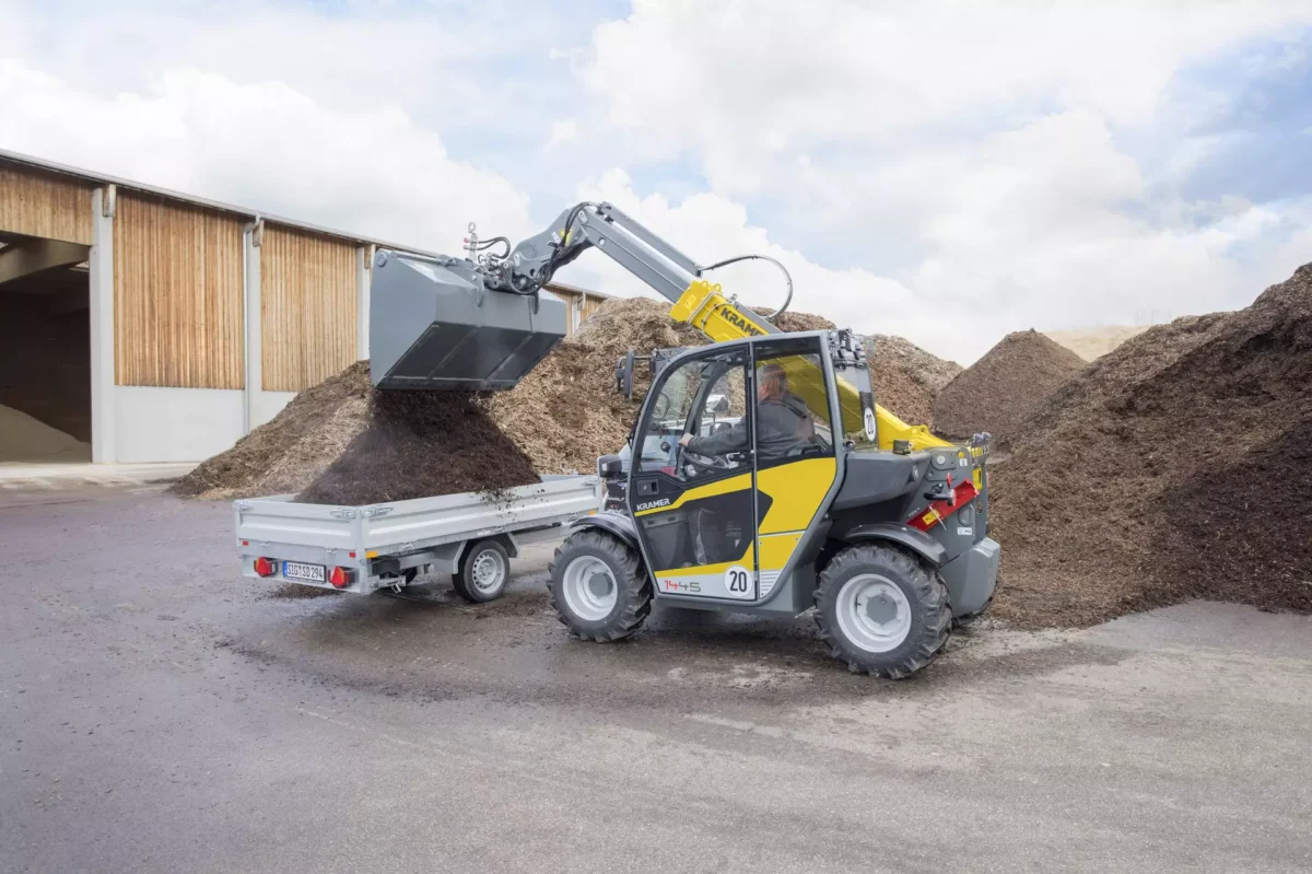 Der Teleskoplader 1445 von Kramer überzeugt durch seine kompakten Abmessungen und ist ein vielseitiges Arbeitsgerät in verschiedenen Branchen. Mit einer beeindruckenden Stapelnutzlast von 1.450 kg und einer Hubhöhe von 4,5 m ist er optimal für das Handling schwerer Güter geeignet. Dank seines dynamischen Allradantriebs bietet der Teleskoplader eine hohe Wendigkeit und Flexibilität, was ihn ideal für enge Baustellen macht.